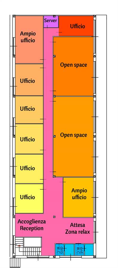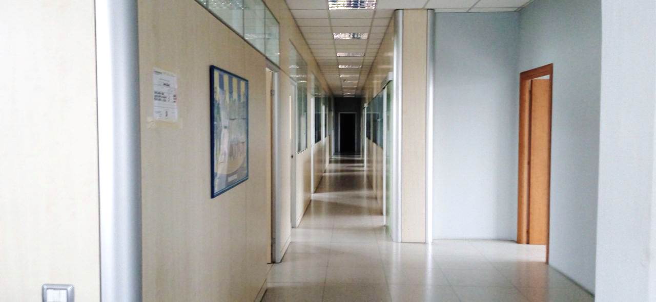 Un lungo corridoio permette l'accesso ai diversi uffici:
