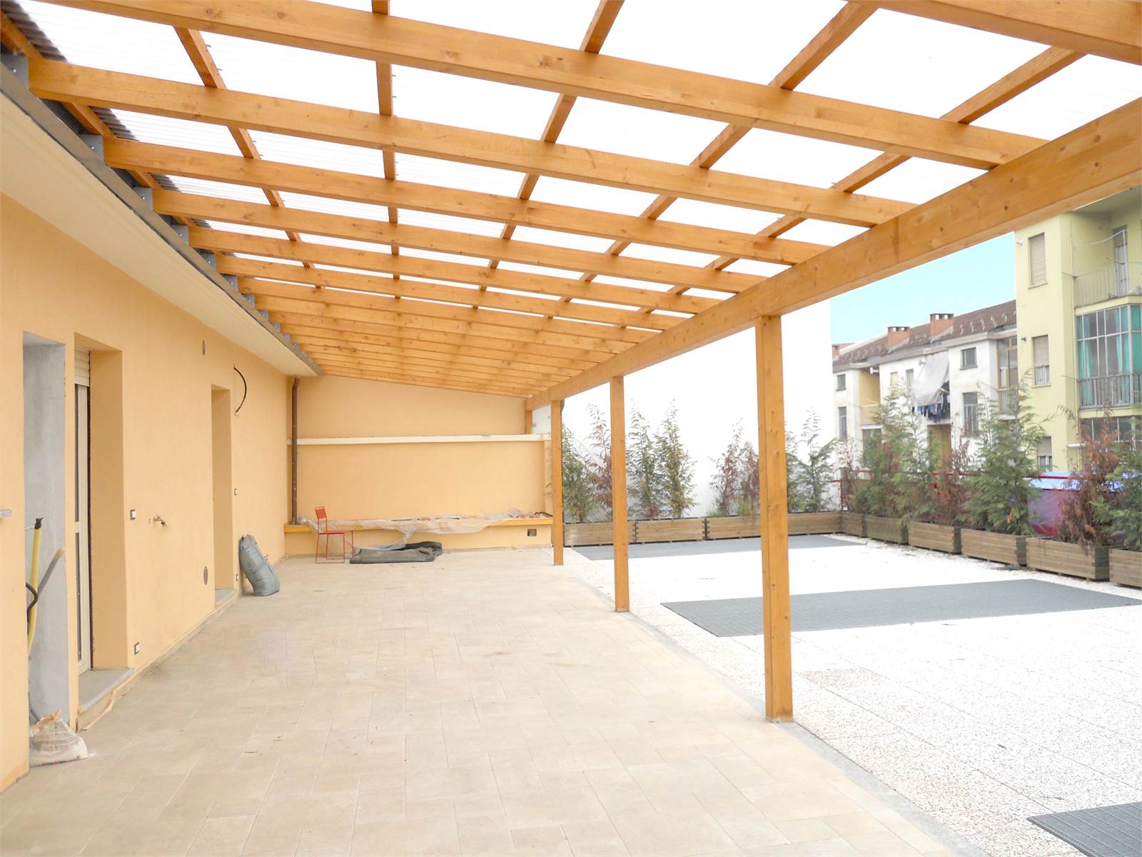 Il terrazzo in parte coperto, è di di 114 mq per ogni appartamento.