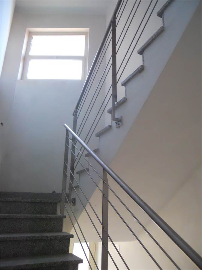 Dalla porta in alluminio e cristallo e videocitofono al piano strada, si salgono le scale fino al primo piano.