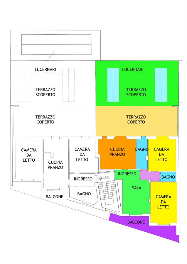 Il terrazzo in parte coperto, è di di 114 mq per ogni appartamento.