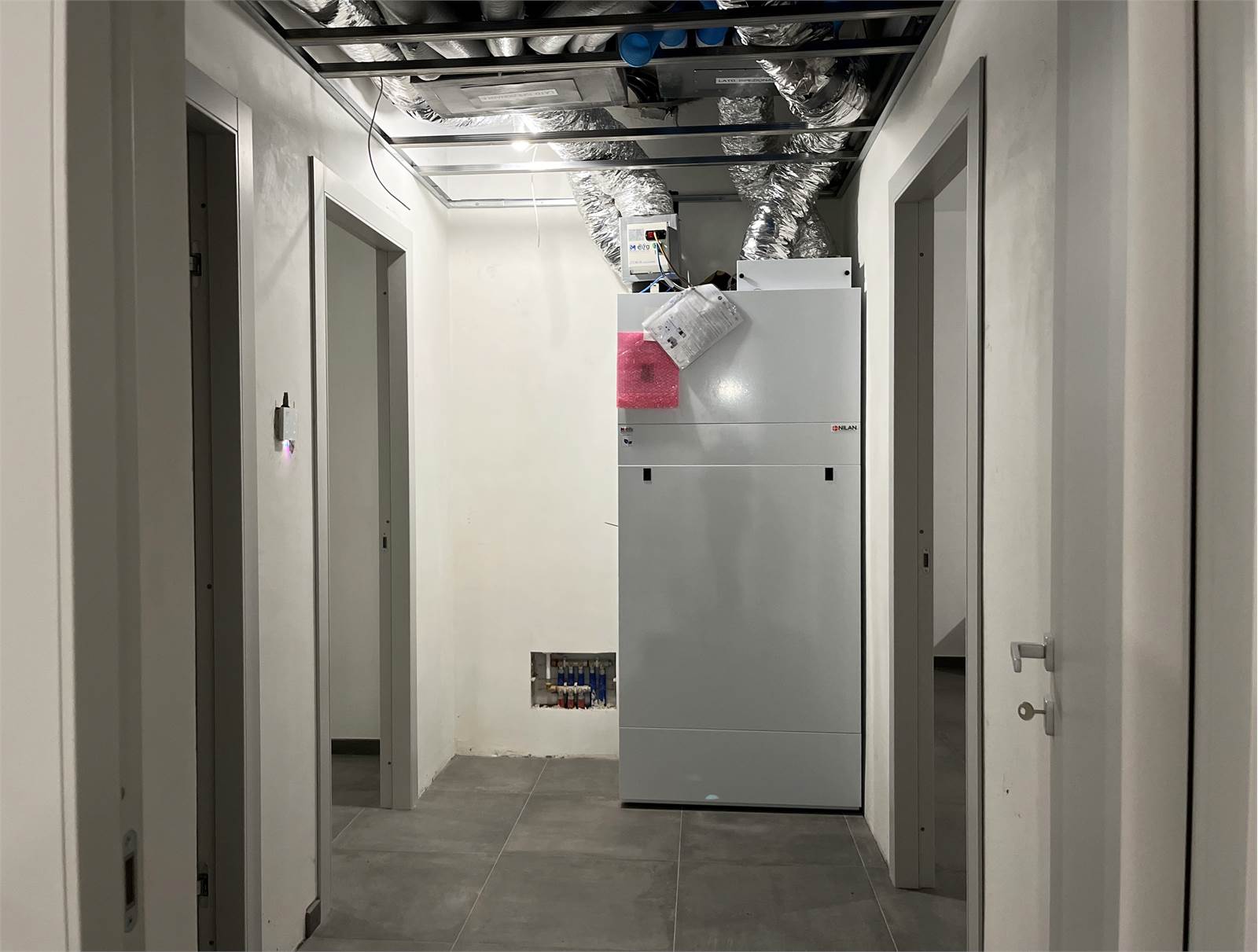 - Riscaldamento, filtraggio aria, raffrescamento, deumidificazione e produzione di acqua calda sanitaria, tramite pompa di calore con recupero del calore passivo; impianto autonomo per ogni appartamento.