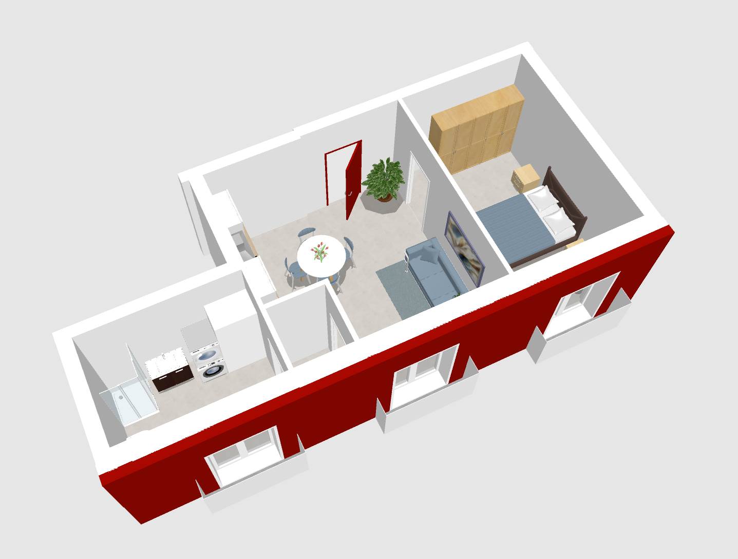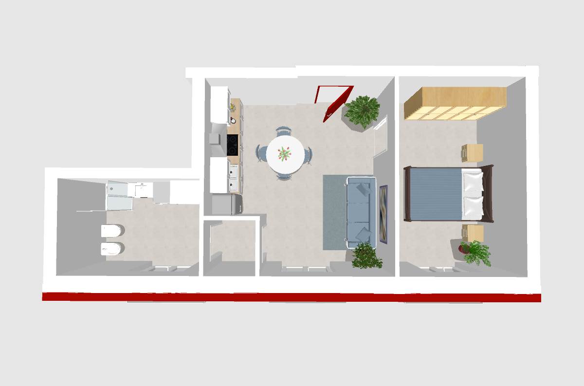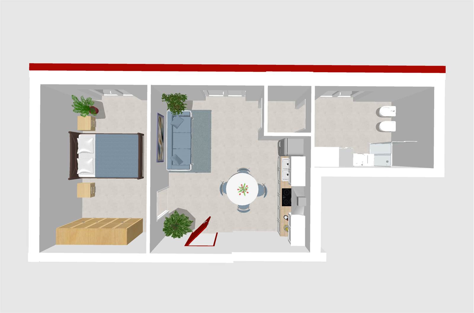 Nello stato attuale è un monolocale, ma è possibile chiudere lo spazio per ricavare una spaziosa camera da letto.