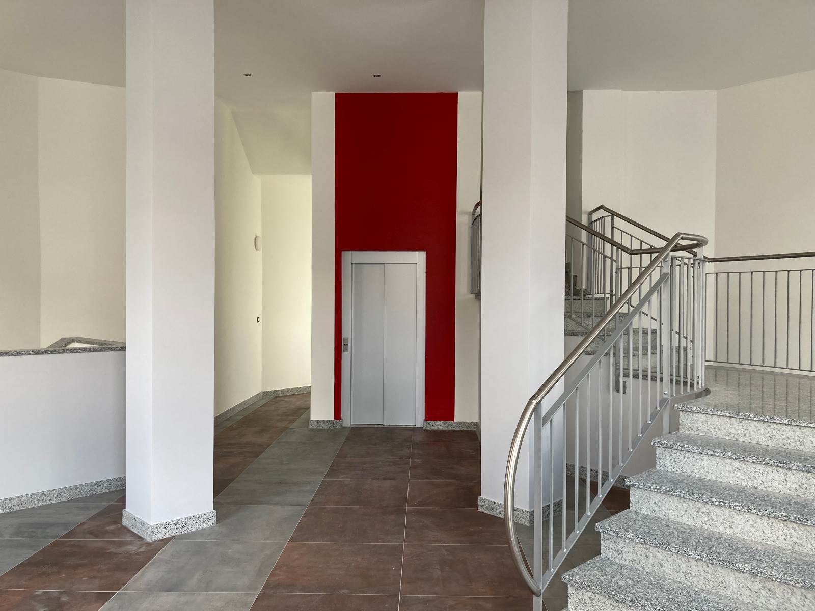 L'atrio è spazioso e luminoso e ha una scala a vista.