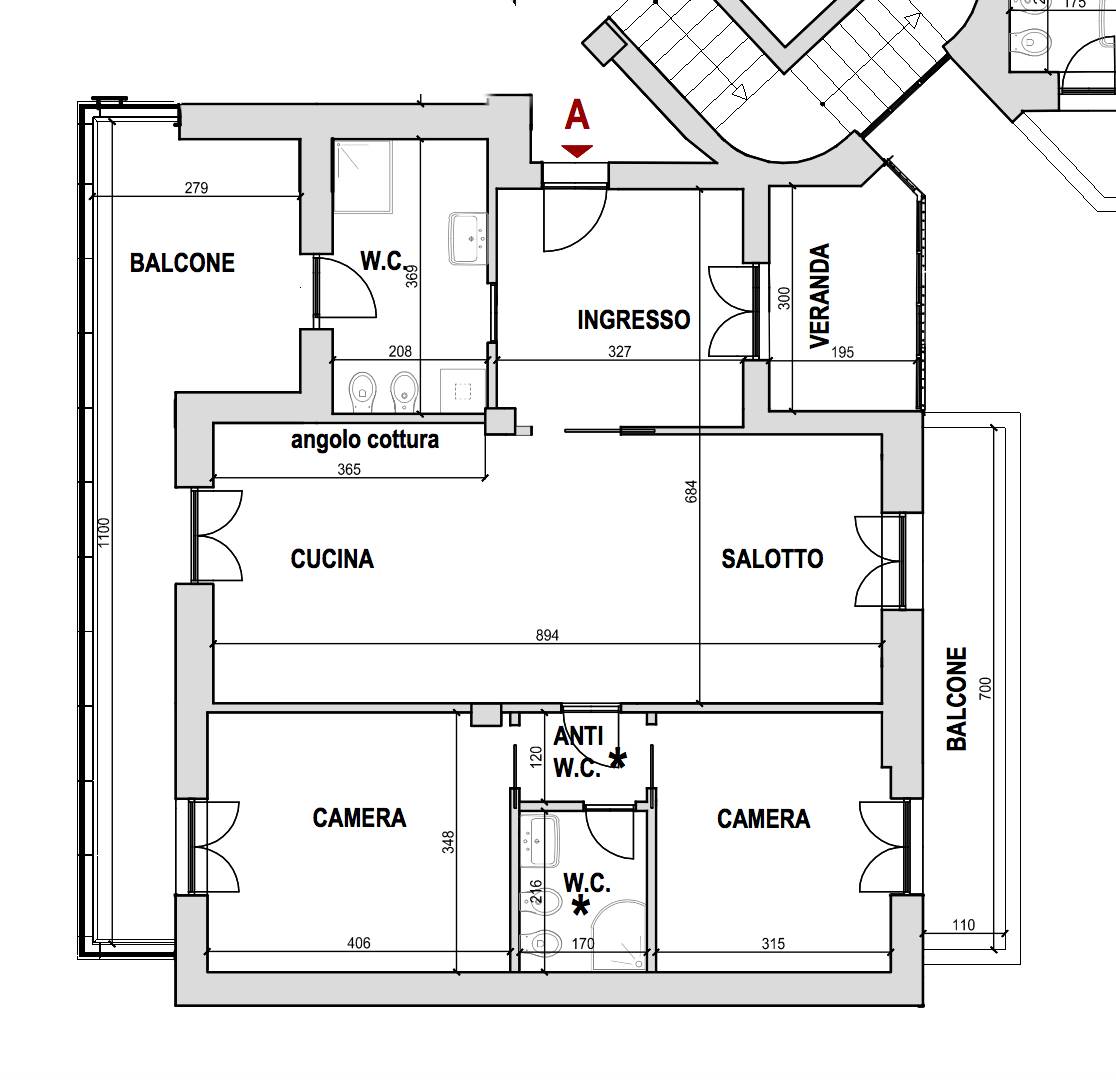 In più una veranda con serramenti in alluminio di 5,7 mq ed un secondo balcone si affacciano verso il cortile.